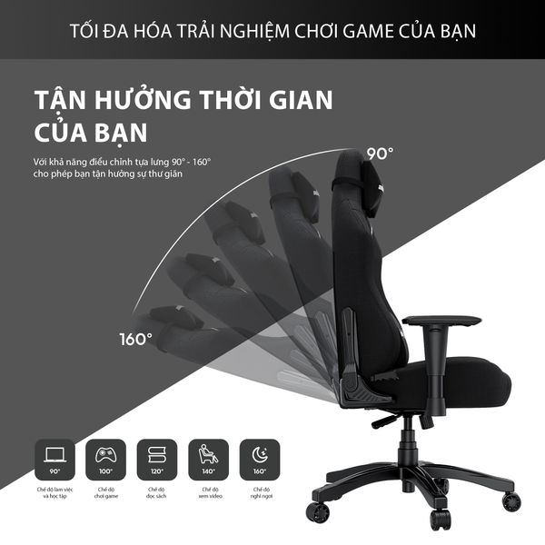 Khung thép tích hợp, trụ nâng khí thủy lực cấp 4, chân đế chịu lực cao. Có thể điều chỉnh tựa lưng từ 90 - 160 độ tận hưởng sự thư giãn.