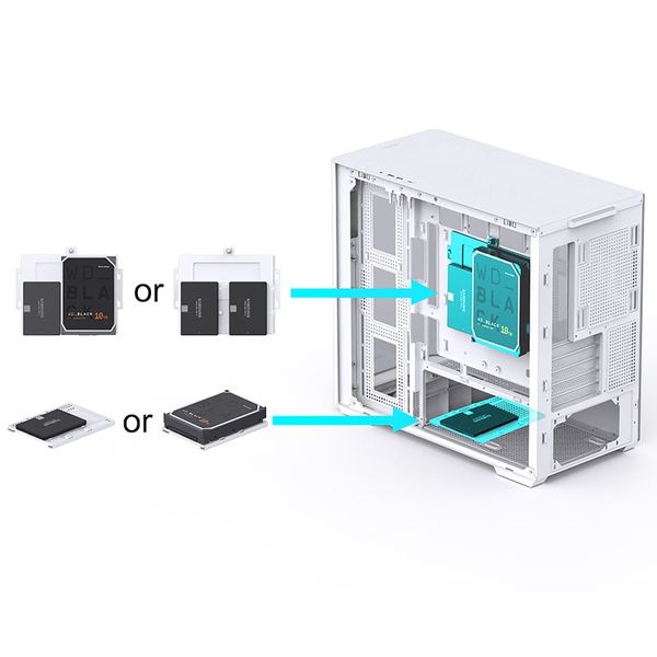 Vỏ Case Jonsbo D300 (Đen/ Trắng, MATX, Kính cong)